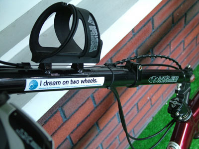 Profile Designs bottle rack (included). The two stickers on the steering mast are removable.