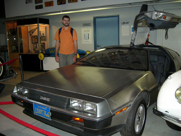 Larry with a Delorean at a car museum