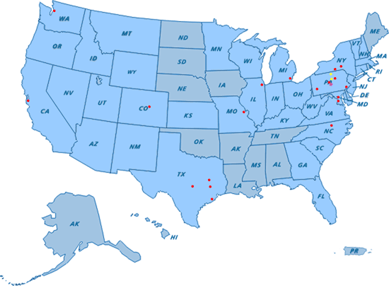 I've been to all states that are bright blue. I haven't been to the states that are slate colored.